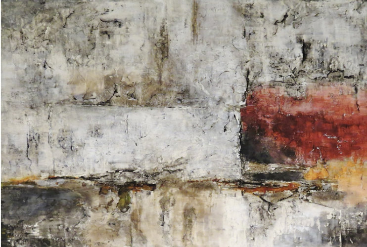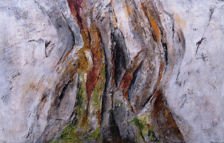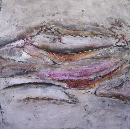 Claus Lobenstein malt überwiegend abstrakt experimentell. Die in mehreren Schichten aufgetragenen Materialien wie z.B. Kalk, Binder und Beize in Kombination mit Tusche und Farbpigmenten machen die Bilder stark haptisch-reliefhaft.